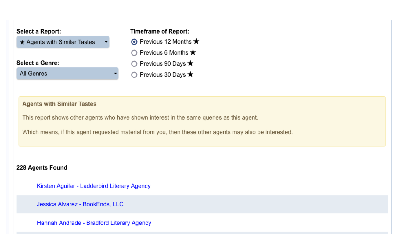 The data collected from QueryTracker members is organized and combined into different reports that describe an agent's query practices.