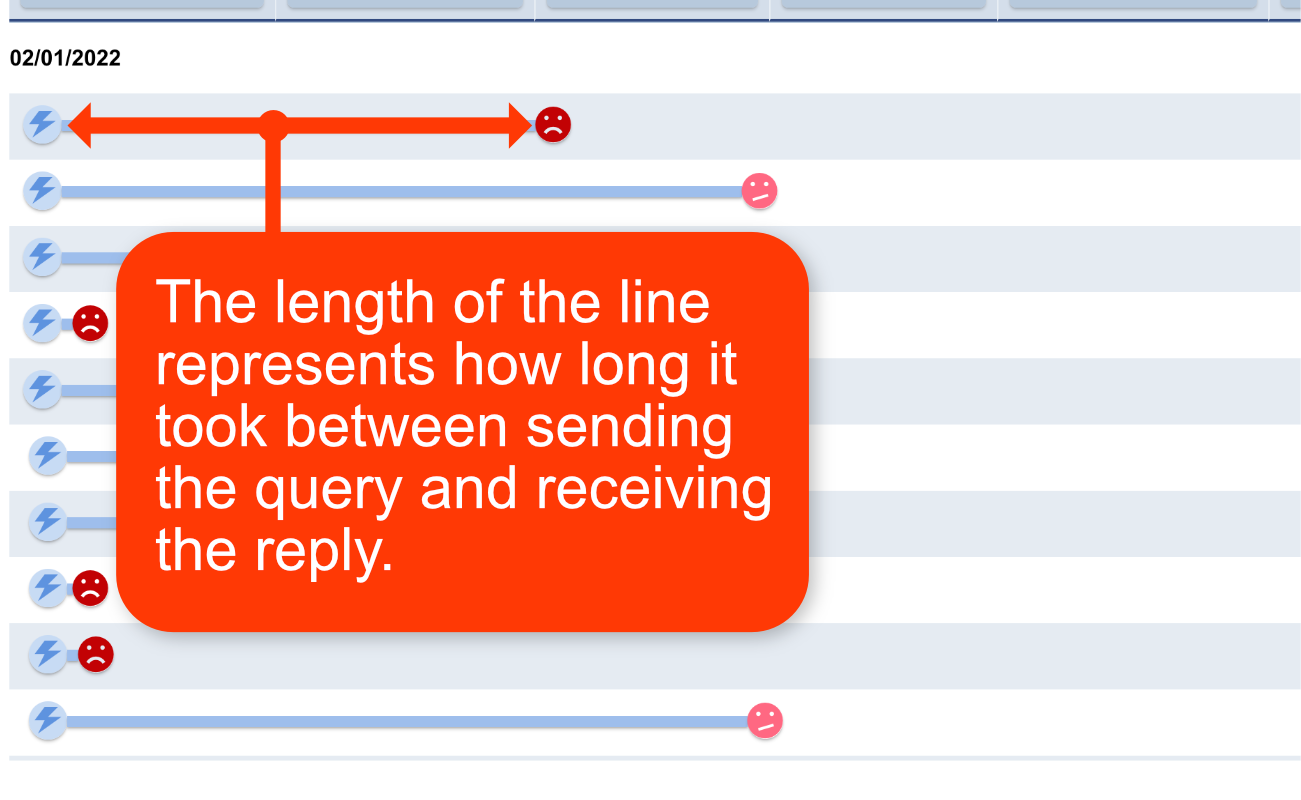 A query timeline is a graph, showing the query history for an agent. It takes all the queries recorded on QueryTracker for an agent, and lays them out in a linear chart.